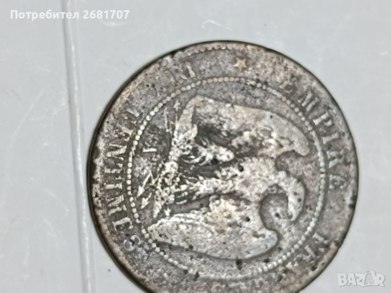 Монета 1 сантим Франция. Наполеон 3. 1853 г.