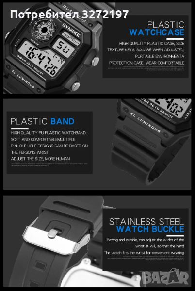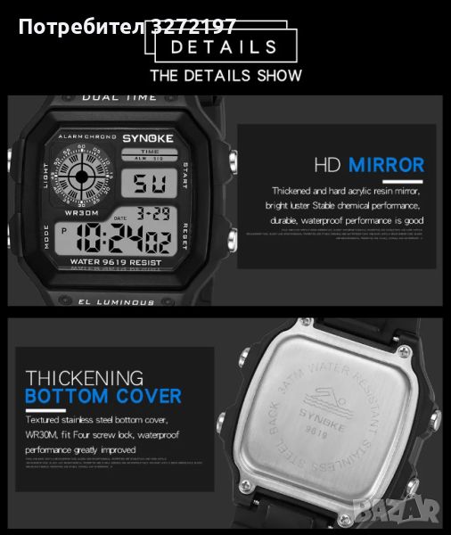 SYNOKE моден цифров часовник Relogio Masculino,Водоустойчив