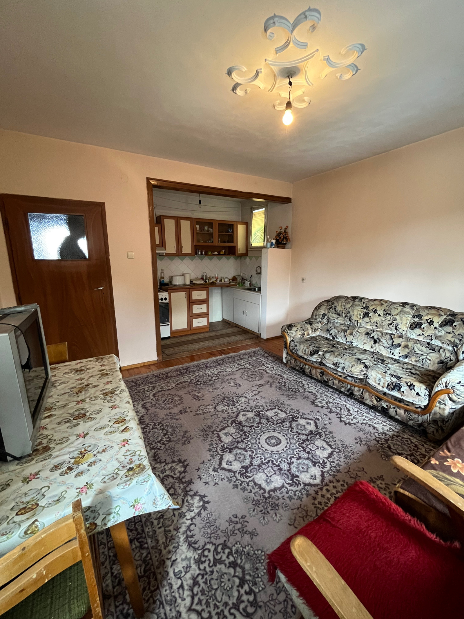Предлагаме за продажба къща на два етажа и сутерен. Разпределение: Сутерен: гараж, мазе и две помещения. Първи етаж: дневна с кухня, хол, спалня, баня с тоалетна и тераса. Втори етаж: дневна с кухня, хол, спалня, баня с тоалетна и тераса. Вътрешни стълби между двата етажа. Всеки етаж има отделна партида за ток. Равен и поддържан двор.