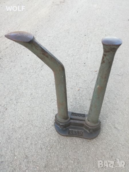 Продавам автентична маркирана немска обущарска наковалня 20кг и 600гр,наковалнята е предназначена за обущари и най-вече може би за ботуши,височина по голямото краче 57.5см и по малкото 55.5см,широчина между крачетат 37,5см,диаметър от долу 27,5см на 15см,ударна част на малката страна 6см и на голямата страна 10см,запазен ясни маркировки иделна за работа,както за колекция декор интериор.Внесена от германия.