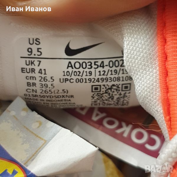 оригинални маратонки NIKE ZOOM 2K номер AO0354-002Използвани броени пъти , като нови , без следи и забележки . , Красиви , модерни , удобниМаратонки с които няма да останете незабелязаниАмортисьорна система, която позволява чувствителен контакт със земята. Той е по-нисък, по-бърз, с отлична стабилност и по-силен удар. Тази уникална конструкция позволява на амортисьорната възглавница да запази формата си, когато е напомпана.Модни и ежедневни - така можете да опишете универсалните обувки Nike Wmns Zoom 2K. Подходящи са за дънки и не толкова официално облекло, но днешният стайлинг включва и съчетаването на подобни обувки със спортно яке. Визията е подготвена балансирано - модерно, но и вдъхновено от традиционните спортни модели. Горната част на обувкитеNike Wmns Zoom 2K AO0354-002е изработена от висококачествени материали (плат) с добра дишаемост - кара краката ни да дишат свободно. Особено внимание заслужава подметката, изработена от издръжлив, гъвкав материал с форма на протектора, която ще ни осигури стабилност дори на хлъзгав терен. Обувките на Nike са едновременно висок комфорт и страхотно прилягане, което дължим на използването на иновативни технически решения. Отлични функционални характеристики, комфорт и в същото време нестандартен дизайн - така в едно изречение можете да обобщите предимствата на този модел Nike. Обувките са предназначени за цялата година.