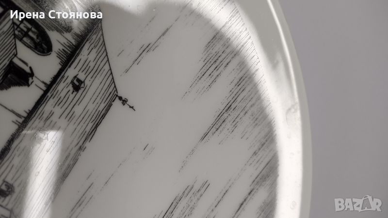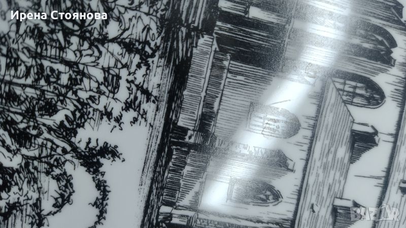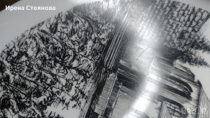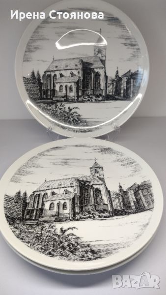 Декоративни чинни за окачване на стена. В черно-бяла гама с различни емблематични, исторически паметници и сгради в Saarbrücken, Germany. Диаметър 24,5 см. При 2 чинии има малки забележки лека чертичка виждат се под ъгъл. Цена за брой 20 лв.