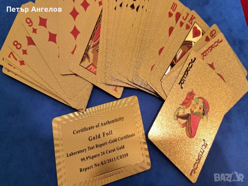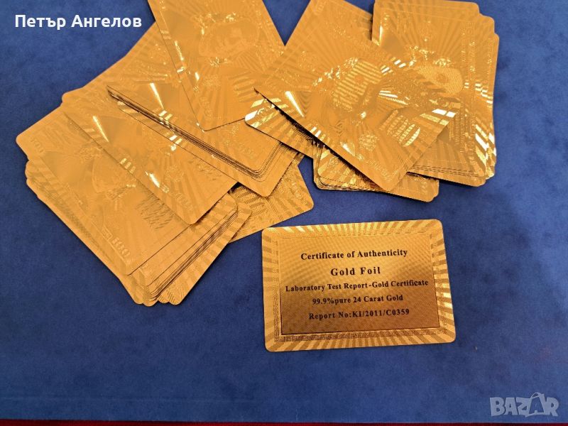 Луксозни позлатени карти за игра с долари със сертификат → Обява 45724715