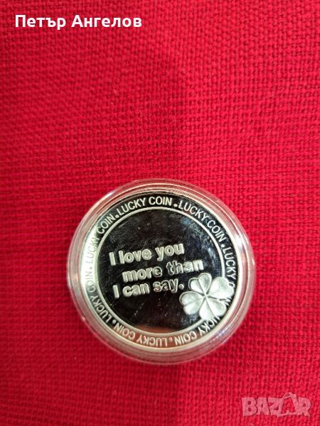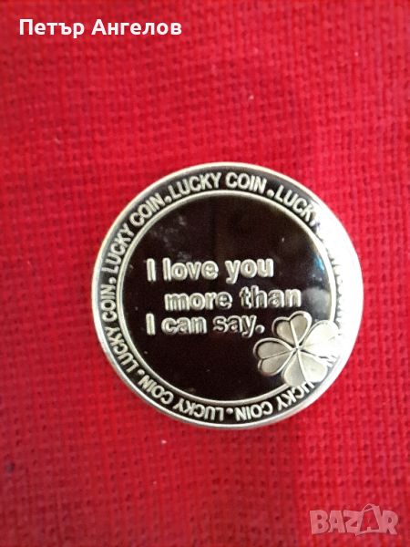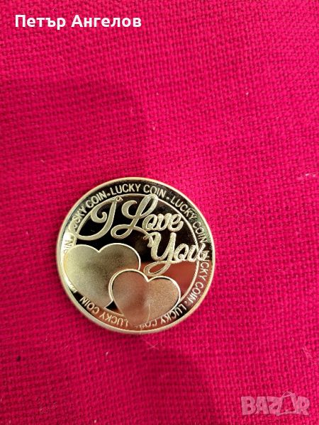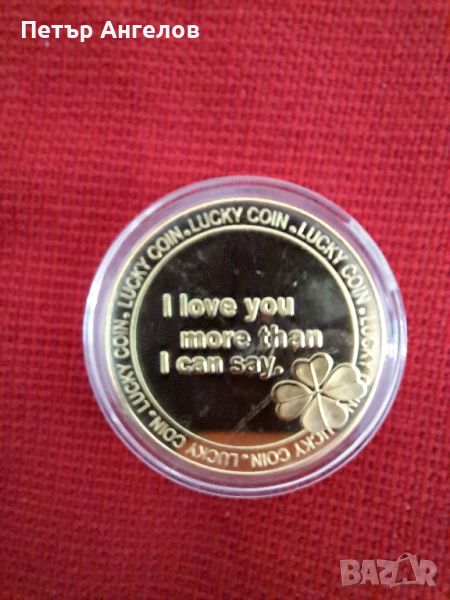 Позлатена късметлийска монета "Обичам те повече, отколкото мога да кажа" → Обява 45724917