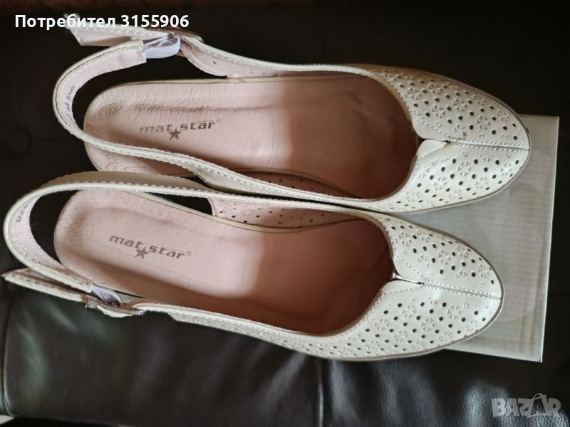Летни сандалки,с отворена пета на Mat Star.Бежова перфорирана кожа,много удобни,височина на тока 6см.