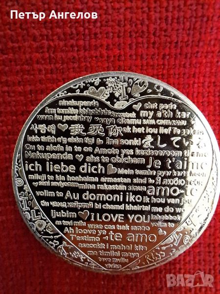 Цветна позлатена монета с рози - Обичам те на различни езици → Обява 45725478