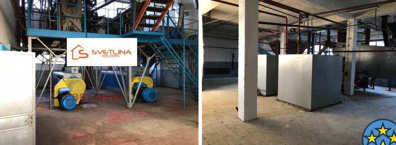 Svetlina Real Estate Ви представя маслодобивно предприятие построено през 1996 г., но ИЗЦЯЛО ОБНОВЕНО и РЕНОВИРАНО през 2017 г. с НОВО техническо НЕМСКО оборудване, разположено на урегулиран поземлен имот с площ от 35 003 кв.м. Парцелът е равнинен, с изградена инфраструктура: вътрешни пътища и площадки асфалтови и бетонови, алеи, озеленяване. Заграден с ограда с бетонов борд и метални пана. С много добра транспортна достъпност - асфалтов път до имота, изграден паркинг пред главния вход.