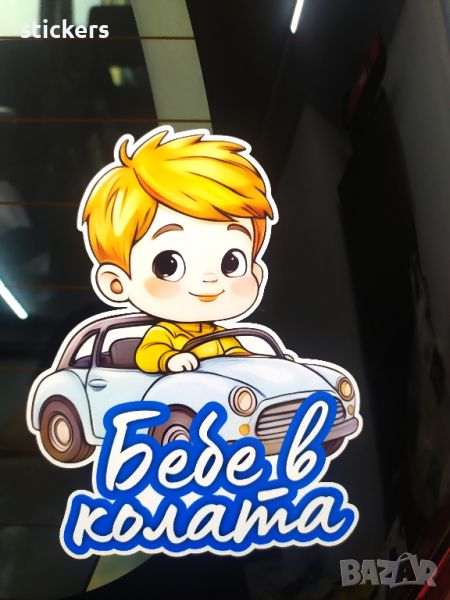 Стикер бебе в колата. Размера е 12х16см. за външно лепене. Изработен от