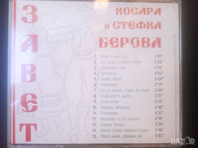 Стефка Берова и Косара Марчинкова – Завет (Вечни Македонски Песни), снимка 1 - CD дискове - 45726441 Стефка Берова и Косара Марчинкова – Завет (Вечни Македонски Песни), снимка 2 - CD дискове - 45726441 Стефка Берова и Косара Марчинкова – Завет (Вечни Македонски Песни), снимка 3 - CD дискове - 45726441 1/3