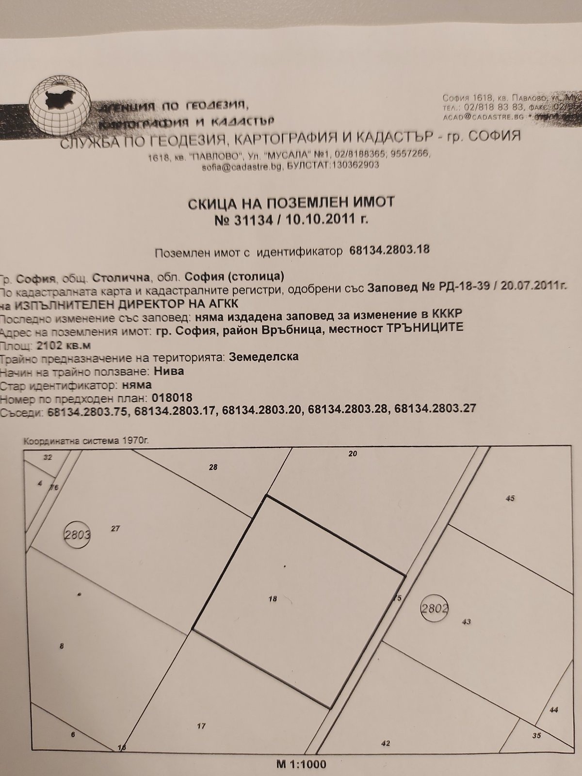Поземлен имот с идентификатор 68134.2803.18 в местността ТРЪНЦИТЕ в землището на район Връбница.