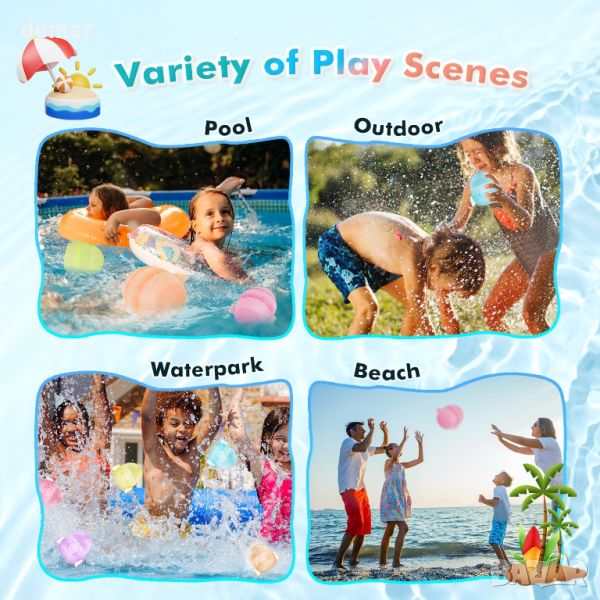 12 бр. Водни балони за многократна употреба, самозапечатващи се силиконови, лятна играчка за деца