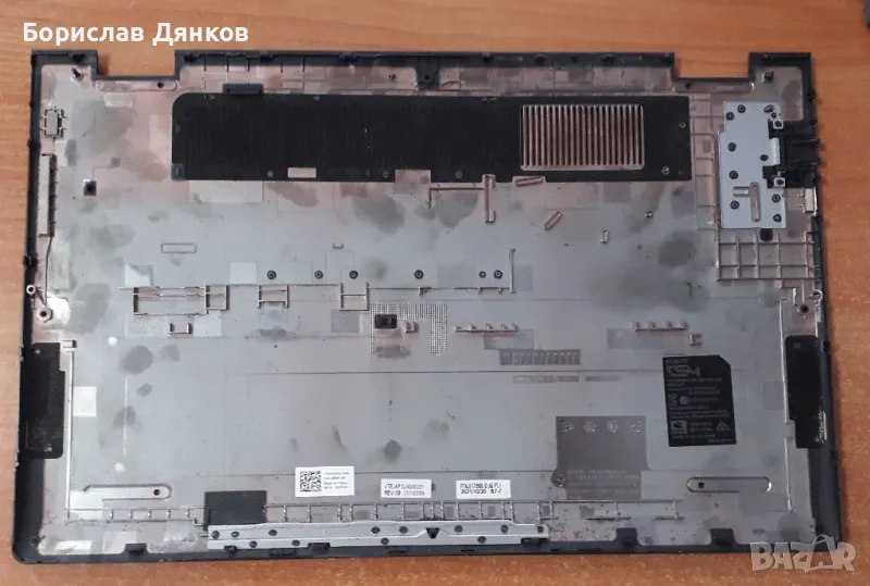 Долен корпус, говорители, вентилатор, охладител, панти, брекети, камера, шина за хардиск, лентов кабел за хард диск, WiFi адаптер, батерия в неизвестно състояние.