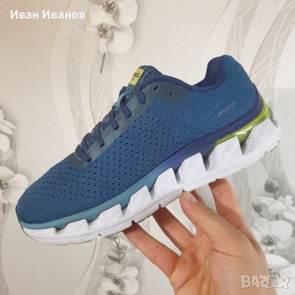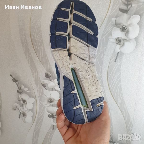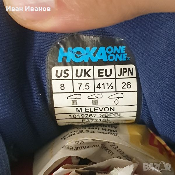 маратонки HOKA Elevon в Marlin/Blue Ribbon номер 41-41,5 Много малко използвани , с мининимални следи по подметката . без забележки , Външно като нови Леки , модерни и удобни Цена по магазините около 300лева.Използвани с минимални следи , най вече по подметката. Външно са като нови.HOKA Elevon за жени са неутрални маратонки за бягане. Тези изцяло нови обувки са отзивчиви, леки и проектирани за скорост. Новата междинна подметка предлага директно и удобно усещане по време на бягане.Междинната подметка е направена от 2 слоя материал Pro2Fly, и двата с различна твърдост. Междинната подметка ви осигурява усещане за отзивчивост по време на бягане. Най-горният слой на междинната подметка осигурява комфортно усещане. Междинната подметка Pro2Fly има по-мека пета и по-здрава предна част. Това ви помага да запазите стремежа си напред. Геометрията Meta-Rocker в междинната подметка също осигурява гъвкав преход на краката.Леката, отворена мрежеста горна част е много дишаща. Предлага комфортно усещане и подобрено прилягане. Жлебовете във външната подметка предлагат гъвкавост. Освен това подметката е много издръжлива.ТехнологииMeta-Rocker GeometryМеждинната подметка Meta-Rocker с малкото си изместване поддържа естествения модел на бягане. Междинната подметка ви избутва напред и осигурява мек преход от петата към пръстите.Двуслойна междинна подметкаДвуслойната междинна подметка е направена от два слоя материал Pro2Fly. И двата слоя имат различна твърдост. Междинната подметка дава усещане за отзивчивост по време на бягане. Горната част на междинната подметка ви осигурява комфортно усещане. Междинната подметка Pro2Fly има по-мека пета и по-твърда предна част.TPU щипкаTPU щипката на петата предлага стабилност и опора по време на бягане.