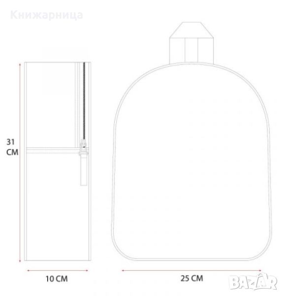 Раница за детска градина с размери 30 X 11 X 25 см и обем 8 литра.