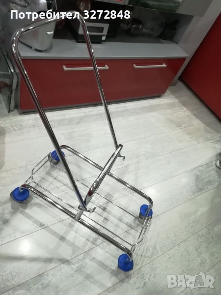 Внос от Австрия в отлично състояние. 2броя кофи х 25л всяка. Конструкция от здрава хромирана стомана. П-образна дръжка. 4бр въртящи и противоударни колела 8см.Размери :ширина 70см;дълбочина 41см;височина 91см. Пращам с куриер.