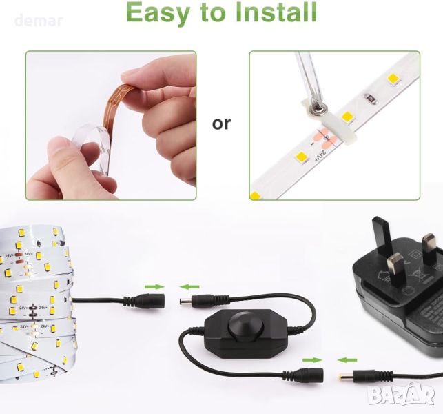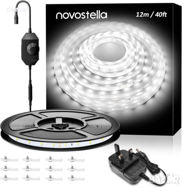 Осветете ефективно всяко пространство с 6-метровата/12-метровата бяла LED лента Novostella, включваща 336/672 броя от 2835 светодиода, ярка цветова температура от 6000K и 1200 лумена. Безопасна и с ниска топлина, лампата работи на 24 V с адаптер, включен в списъка на UL&FCC. Персонализирайте яркостта с включения димер за перфектна атмосфера. Гъвкав и лесен за рязане на всеки 7 светодиода, той отговаря на различни настройки и е идеален за декорация или ежедневно осветление. Неговият самозалепващ се гръб осигурява бърз и сигурен монтаж, което го прави идеален за всекидневни, кухни, спални, партита и др.
