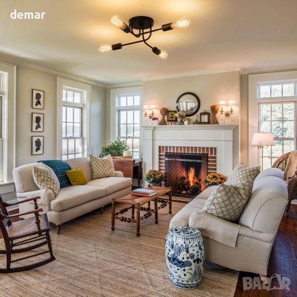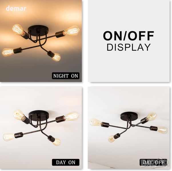 Тази ретро лампа за таван е с регулируема позиция и ъгъл на рамената, което я прави идеална за използване в кухни, спални, фоайета, коридори, стълбища и офиси. С размери 47cm x 47cm x 15cm (ДxШxВ), той изисква твърдо окабеляване и поддържа четири E27 крушки (макс. 60W), съвместими с крушки с нажежаема жичка, LED или CFL (крушките не са включени). Пакетът включва подробно ръководство с инструкции за инсталиране за бърза и лесна настройка.