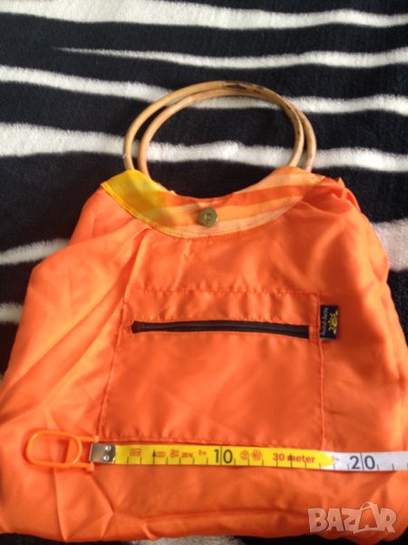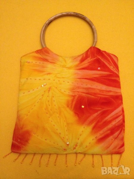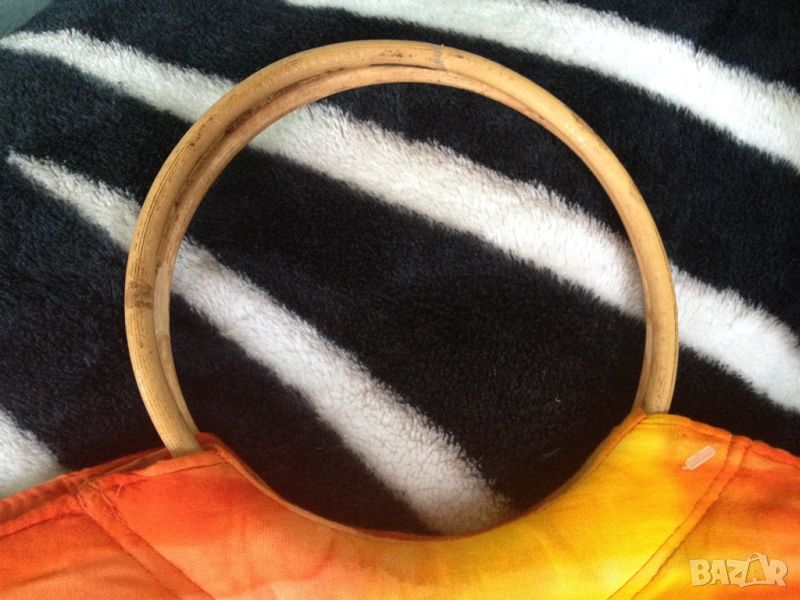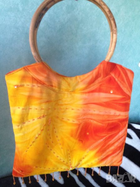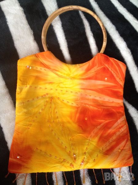 Лятна малка оранжева чанта Saison seche дръжки дърво текстил оранжево жълто → Обява 45745699