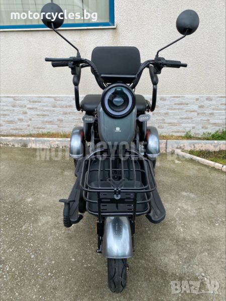 - задно предаване, с диференциал - брой места: 3- местна - спирачна система: предни дискови, задни барабанни спирачки - 3 скорости - аварийни светлини - паркинг режим (P) - дигитален дисплей тип apple - странични светлоотразители - задна скорост - пълна светлинна окомплектовка ( преден фар тип AMG, мигачи- предни, задни, стопове, габарити) - клаксон - кошница за багаж под задната седалка - предна кошница за продукти - цифров километраж -налични цветове: червен, сив, черен Подарък- огледала за задно виждане 2 броя при закупуване!