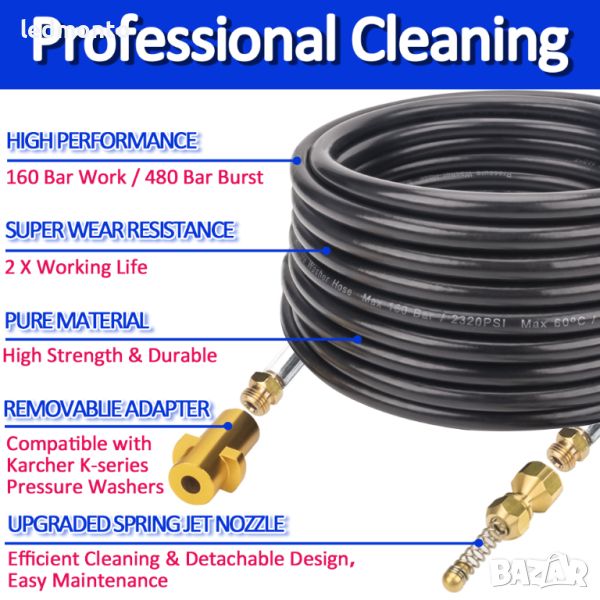 **Почистете канализацията си бързо, лесно и ефективно с този комплект за почистване с високонапорна струя!**