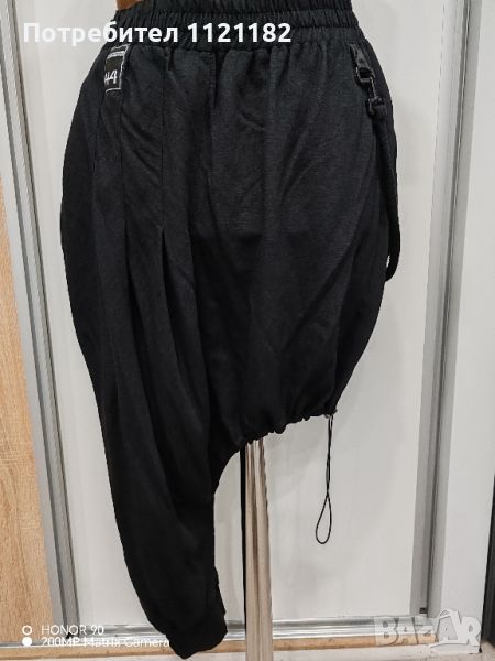 Страхотен летен черен панталон интересен модел на марката H-4. Тип потур с един крачол. Талията е на ластик. Два странични джоба.Размер М/L.