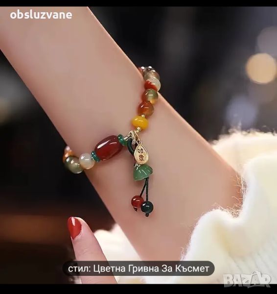 Модна етнически стил гривна с цвете Лотос за късмет.