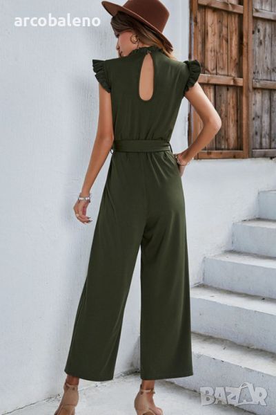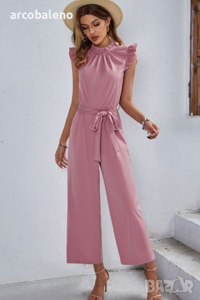 Дамски елегантен ежедневен гащеризон без ръкави с колан, 3цвята