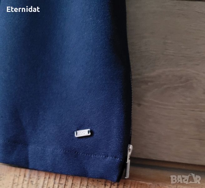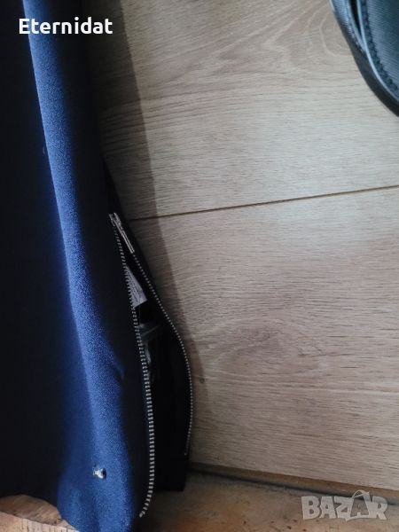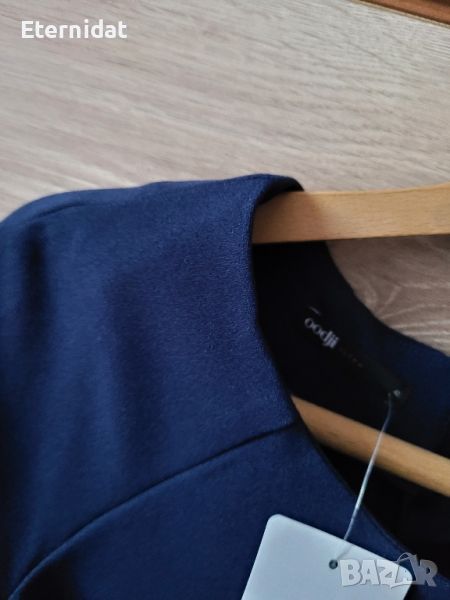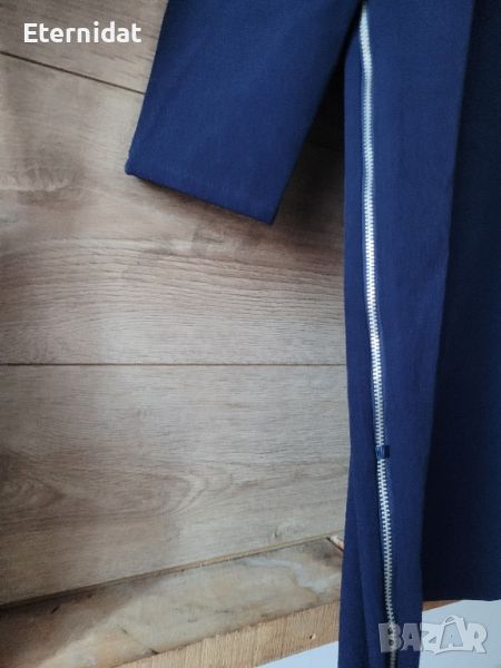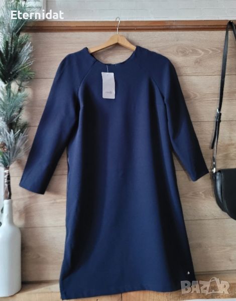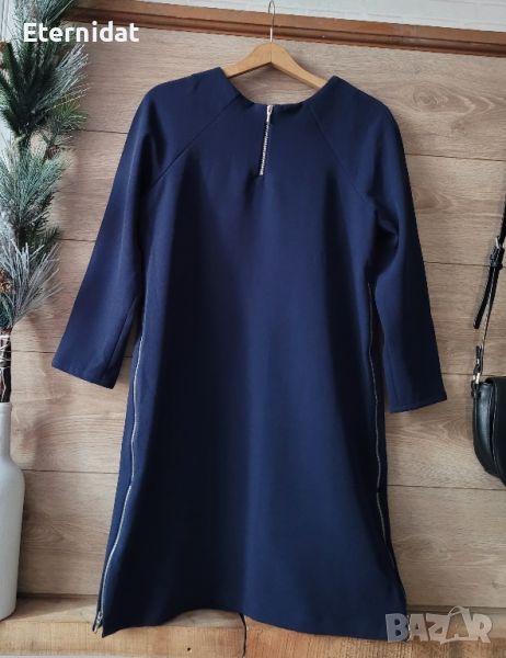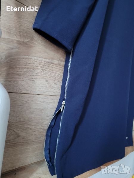 Тъмно синя рокля OODJI ULTRA. Нова с етикет. Брандирано логото на плата и циповете. Странични ципове, които се отварят в долната част по избор. Еластичност на материята. Размер Л. Дължина 90см, гръдна 96 до 100см, ханш 100см в свободно. Цена 49лв