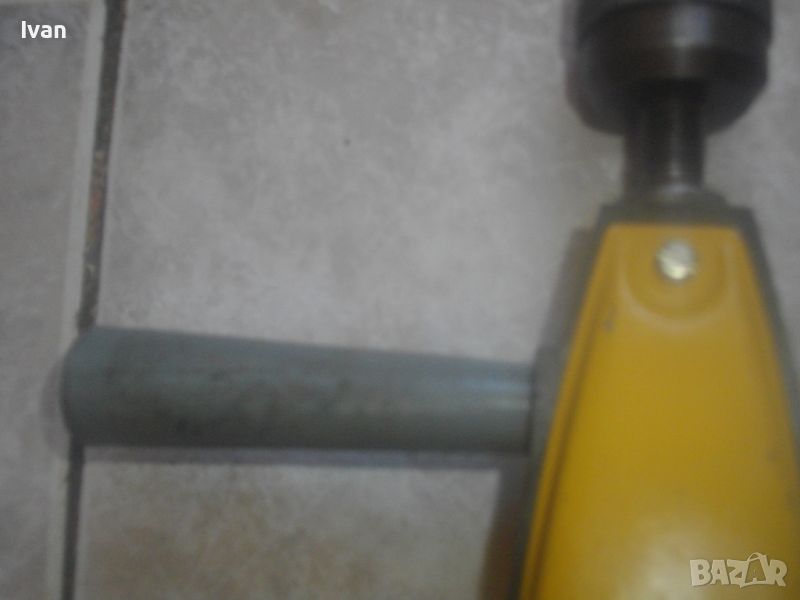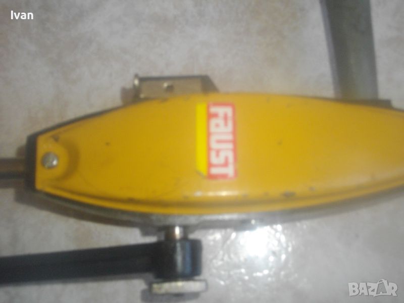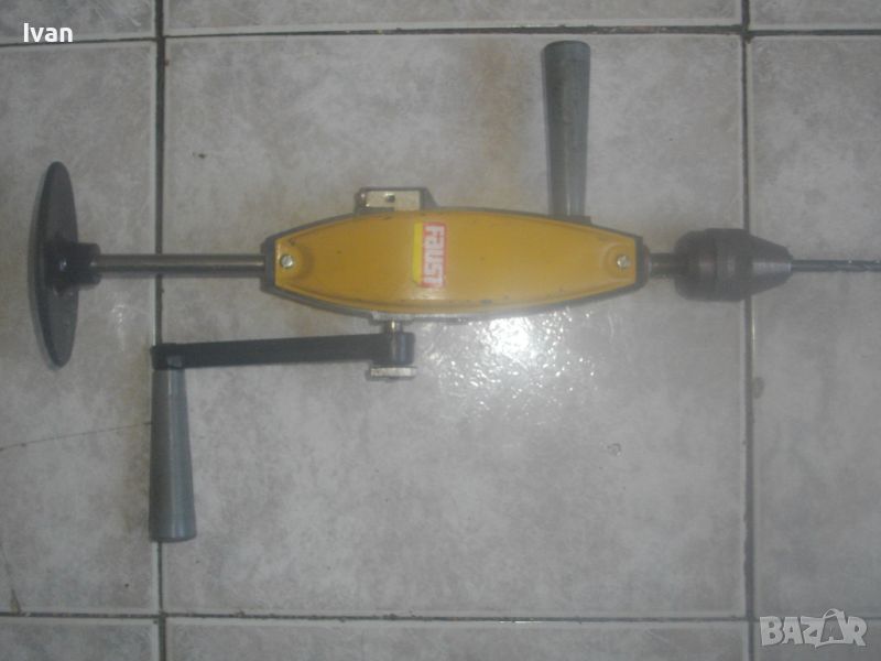 Ръчна дрелка-маткап FAUST - цена 129 лв. Рядко срещан модел на марката. Старото масивно западногермаско качество и произовдство. Като нов, почти нов, в отлично раотно състояние, без одрасквания по оригиналната боя. Подходящ за употреба по предназначение, за колекции и интериор. С опорно рамо метално с инпрегнирана пластмасова подпора за рамото. Дължина инструмент - 565 мм. Патронник от инструментална закалена стомана - захват 1-13 мм, като нов. Налична оригиналната странична дръжка. Заключваща функция на корпуса за въртене. 2 скорости. Поставена бургия за проба и тест. Твърда цена 129 лв/без никакъв коментар.