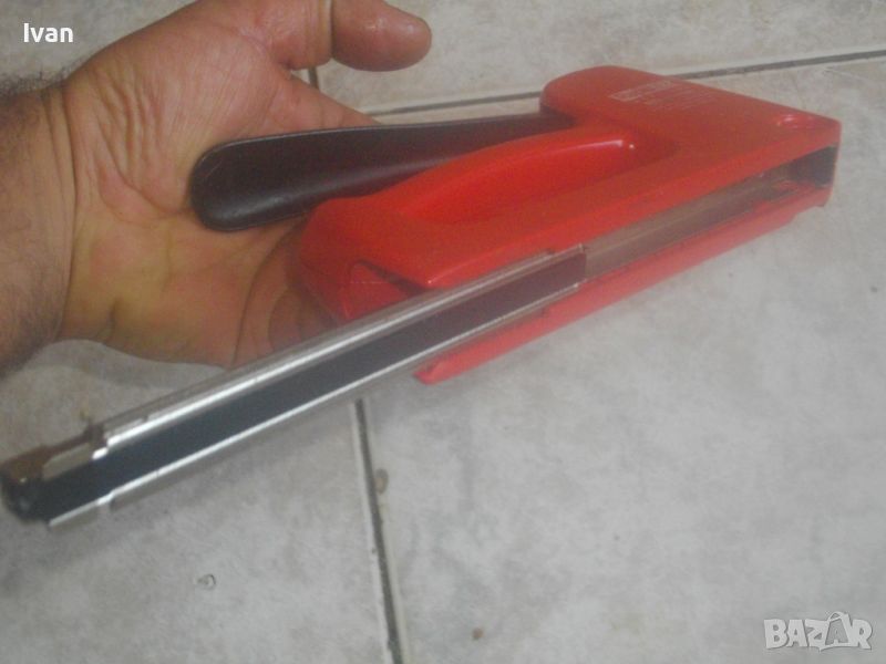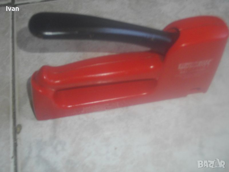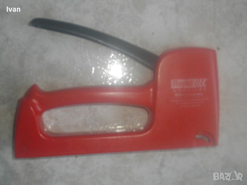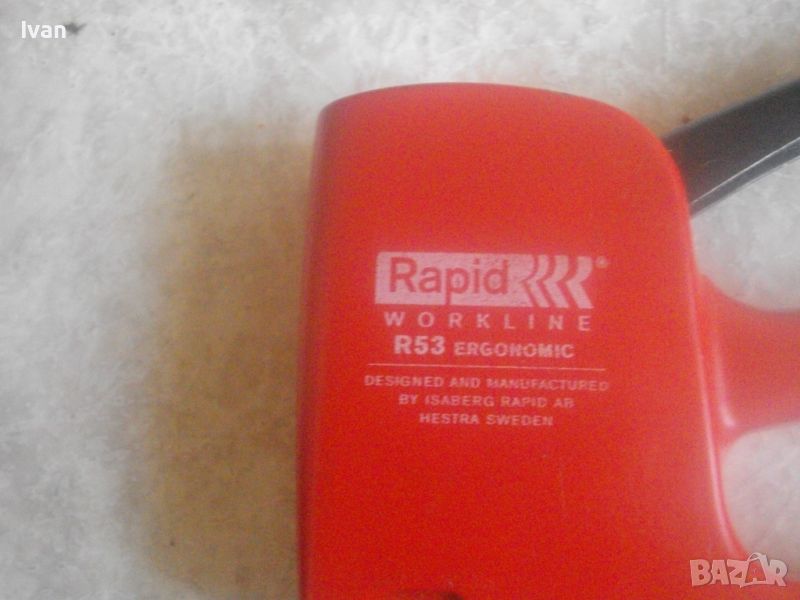 Червен ръчен такер RAPID R53 - цена 99 лв. Отлично състояние. Като нов. Пластмасов олекотен корпус. Професионален/индустриален/промишлен. Шведско оригинално производство. Размери 180 х 110 мм. Маркировка Rapid R 53 - Rapid Workline R53 Ergonomik. За работа с кламери R53 / 4 - 10 mm