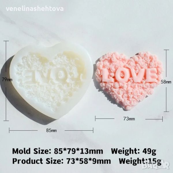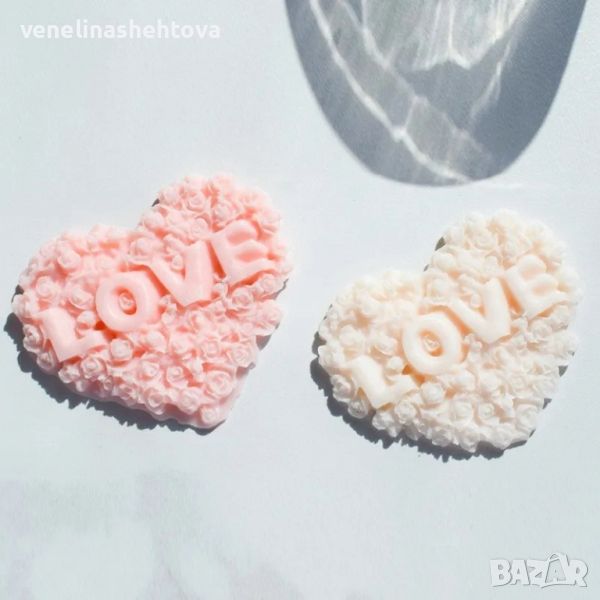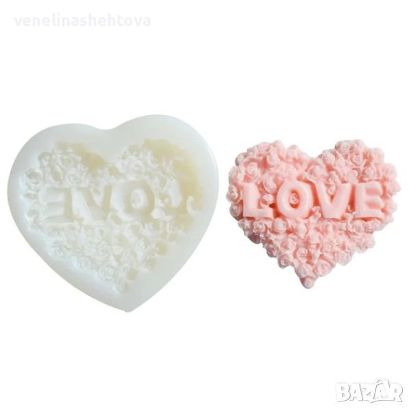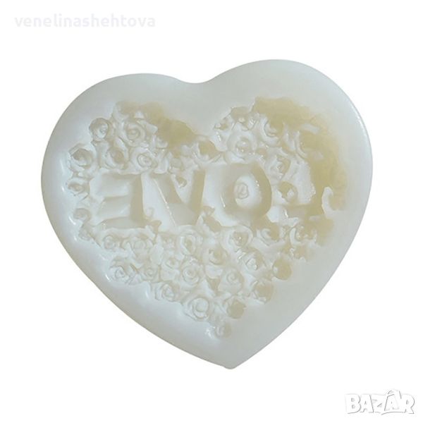 Сърце с рози надпис "LOVE" Силиконов молд за изработка на фондан за торта мъфини свещи гипс → Обява 45761882