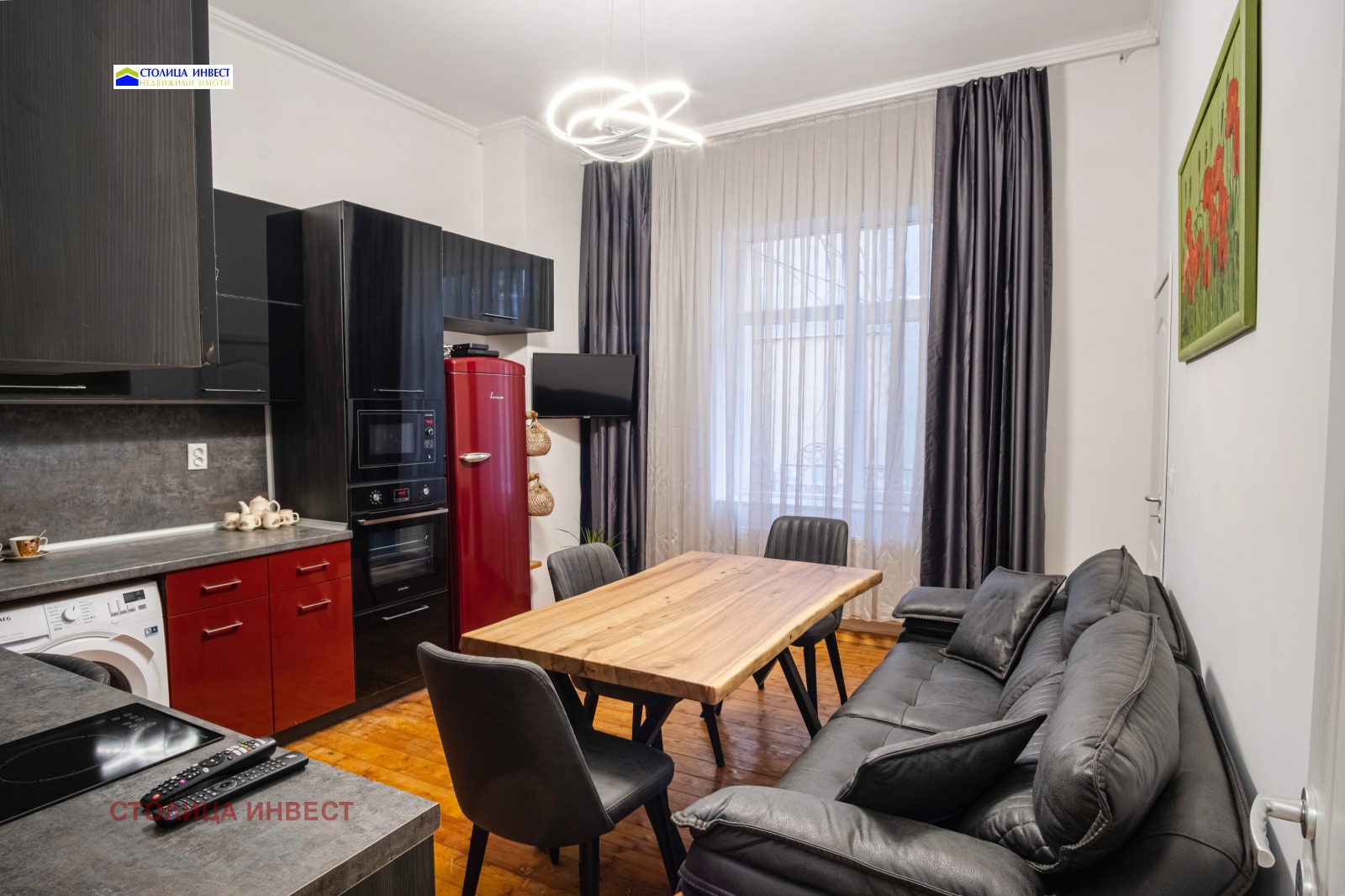 Агенция Столица Инвест предлага на Вашето внимание 3- стаен апартамент в един от най-предпочитаните райони за живеене в град Русе, а именно идеален Център. Имотът е модерен и комфортен с площ от 90 кв.м., намиращ се на ет. 1 от общо 3 етажа, с маза и паркоместа обособени около блока. Жилището е с югозападно изложение, много светло, топло и просторно, с разпределение от коридор, кухня с всекидневна в едно, две спални, две бани с тоалетни, а отоплението е на газ. Апартаментът е напълно обзаведен с луксозни мебели и техника. Намира се в близост до река Дунав.