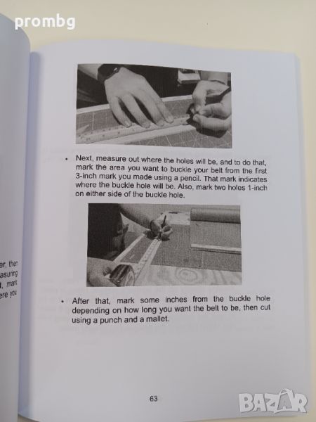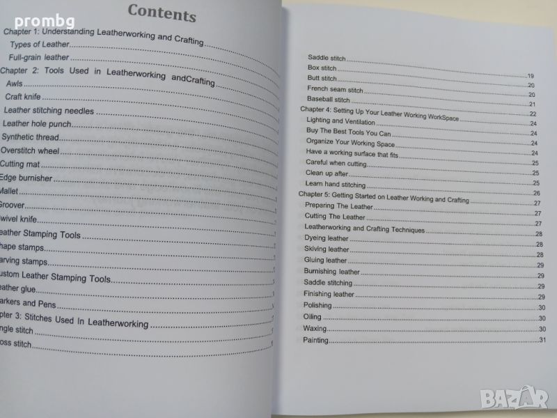Ръководство, книга за начинаещи занаятчии, кожари по обработка и работа кожа. Книгата включва различни инструменти, техники и идеи за начинаещи кожари. Книгата е с меки, цветни корици и с 200 черно бели страници. Размери на продукта: 23,50 см x 19 см x 1,3 см.