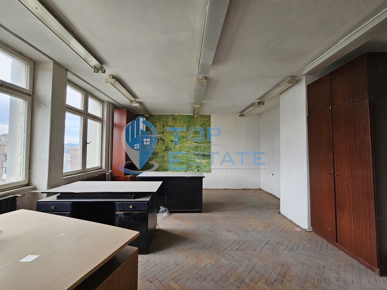 Топ Естейт Недвижими имоти Ви предлагат етаж с офиси в административна сграда, намираща се на комуникативно място в широкия център на гр. Велико Търново. Имота е с площ от 408,38 кв. м., и е разпределен между 14 отделни помещения, коридор и два санитарни възела, изложението на офиса е север - юг. В част от стаите дограмата е сменена, сградата е монолитна с добре поддържани общи части и с работещ асансьор. Имотът е със статут на офис и е чудесно предложение за кол център, адвокатска кантора, счетоводна кантора, IT фирма, друга търговска дейност или за инвестиция. Номер на оферта 2523. We speak English and German.