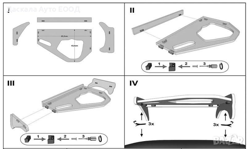 инструкции за монтаж, велкро, винтове и шестостен ключ.