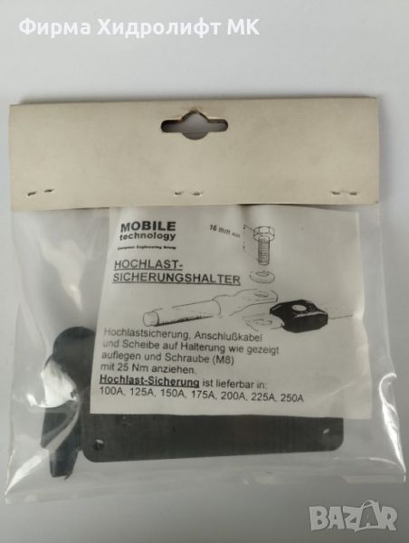Напълно изолиран държач за предпазители с голямо натоварване за защита на големи консуматори или вериги с високо натоварване. Държачът на предпазителя е снабден с резба M8 от двете страни.