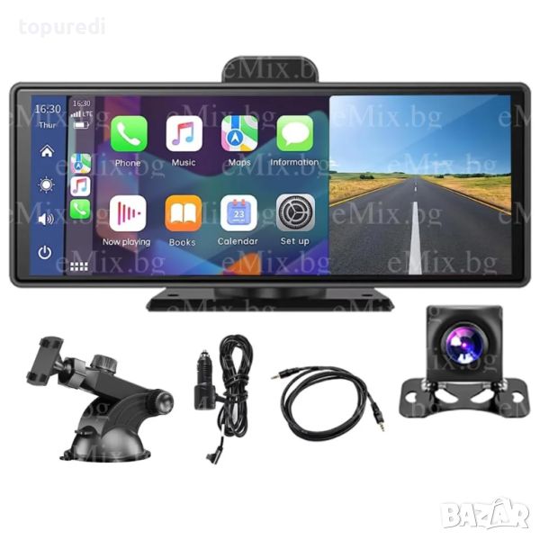 Преносима универсална навигация Carplay Android auto 10.26 инча с предна камера на таблото. Вграденият високоговорител може също да се предава към звуковата система на автомобила чрез aux кабел или FM излъчване, за да изпитате по-добро качество на звука.С 10,26-инчовия цветен IPS екран цветовете са по-деликатни и ярки, което ви позволява да видите повече детайли.Може да се свърже с безжичен carplay или Android auto и да направи навигацията и интелигентния глас по-удобни и по-умни.Можете да свържете карта с памет, за да възпроизвеждате видеоклипове или музика, или можете да се свържете с Bluetooth, за да възпроизвеждате музика чрез Bluetooth или да извършвате телефонни разговори
