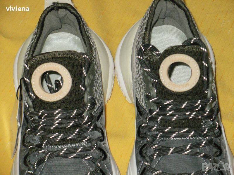 Маратонките са на MANGO, оригинални, нови с етикет. Цветовете са като на снимките, нюанси на паселно зелено, кръгчето отпред е бледо коралово. Материалите са еко, много практично. По номер са 37 и си отговарят.