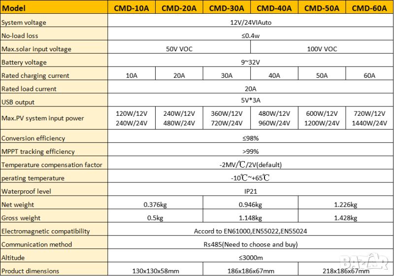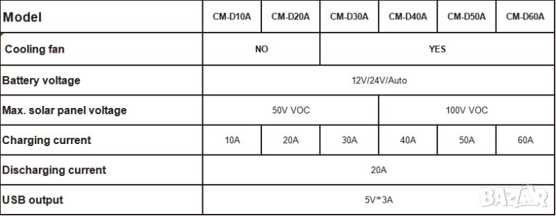 максимален ампераж от панелите - 60a