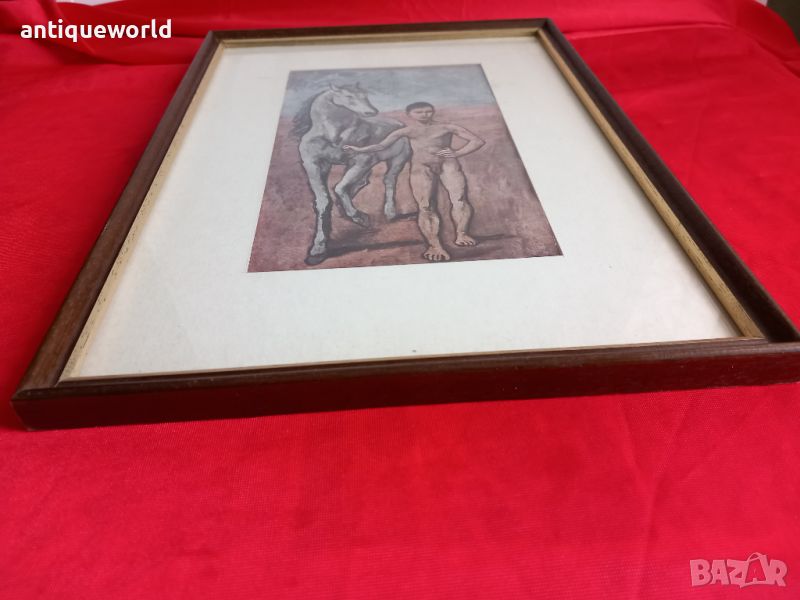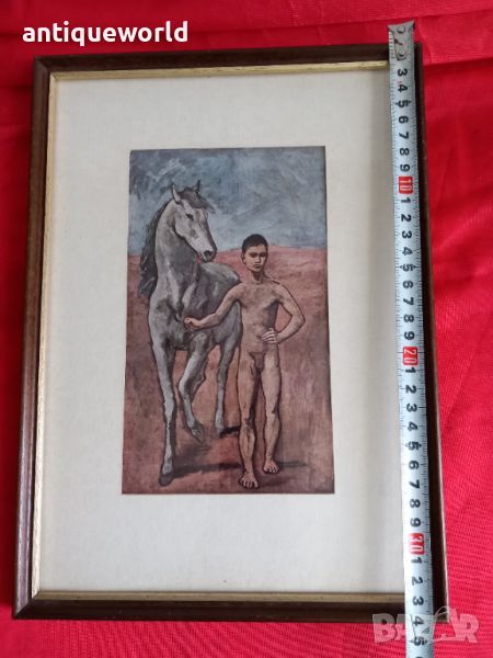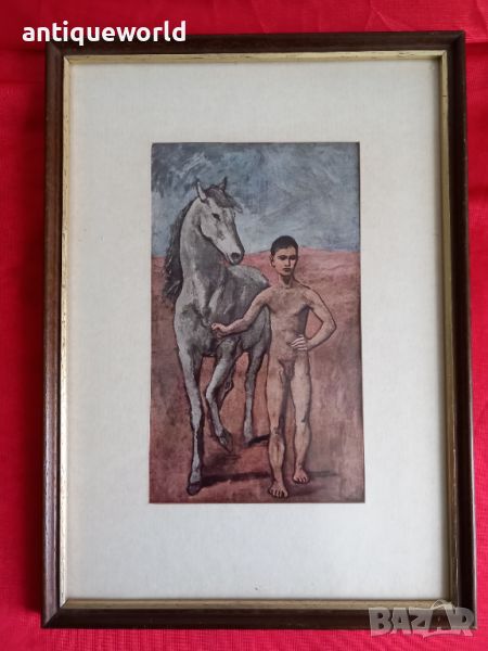 Уникална Висококачествена Картина- Репродукция на Пабло Пикасо "Момче с Кон". Оригиналът на картината се съхранява в Музея за Модерно Изкусво в Ню Йорк. Картинатае рисувана в перида на Розата на Пикасо от 1905до 1906г.Когато той още е бил художник в Париж. Размери в снимките.