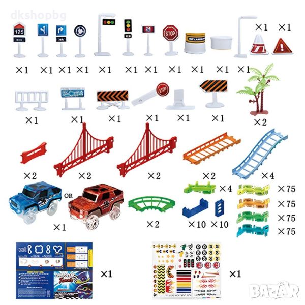 58 броя други елементи, като: части за мост, пътни знаци, дървета и др.