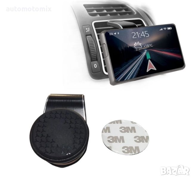 Магнитна стойка за кола за монтиране на вентилационната решетка посредством щипка.
