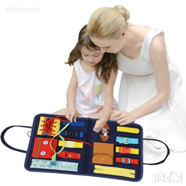 Играейки с нашата манипулационна дъска, детето ви ще може да упражнява логическото мислене на малките си пръстчета.