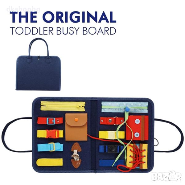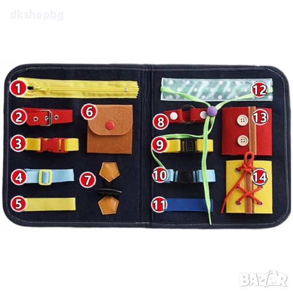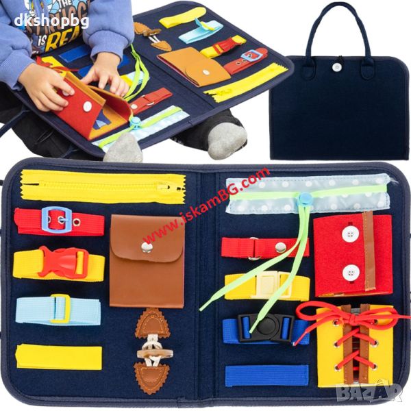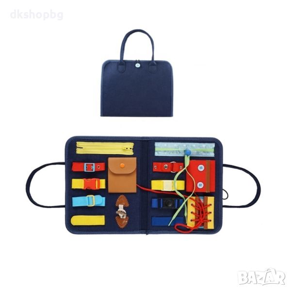 Нашата манипулационна дъска е изработена от филц и се предлага под формата на торбичка. Тя е мека и приятна на допир. Нейната лекота и компактност означават, че тя ще бъде лесна за носене от детето ви и то ще може да я вземе със себе си, където пожелае.