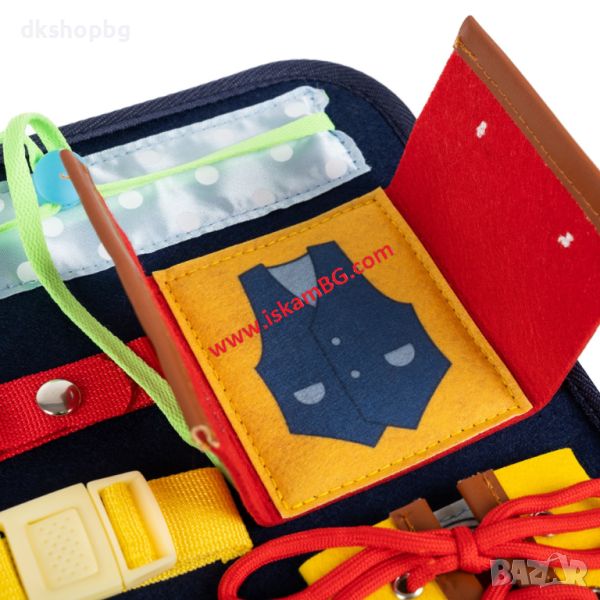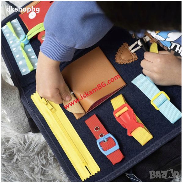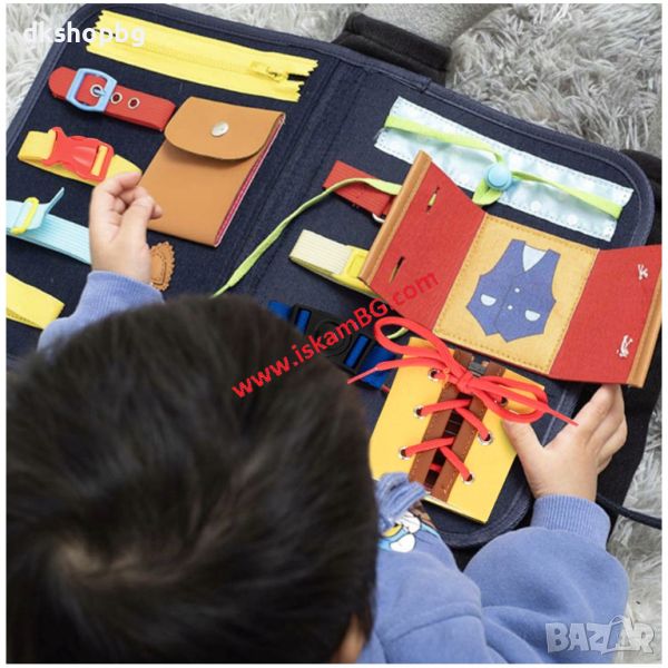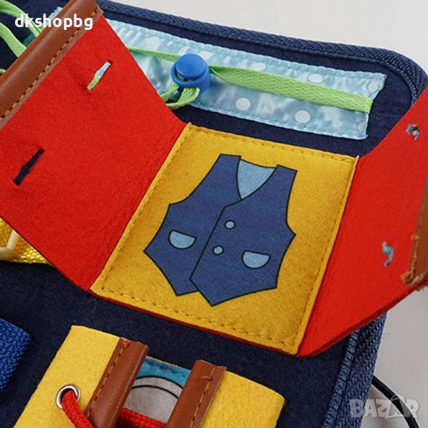 Детето ще се запознае с тези елементи и ще му бъде по-лесно да закопчее копчето на пуловера, да закопчае с велкро обувката или ципа на панталона си. С помощта на закопчалките малчуганът ще се научи да закопчава раницата си на кръста, което му дава усещане за сигурност.