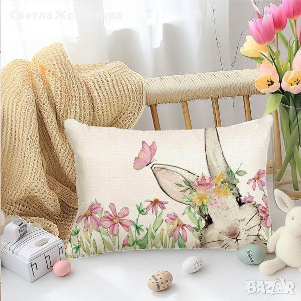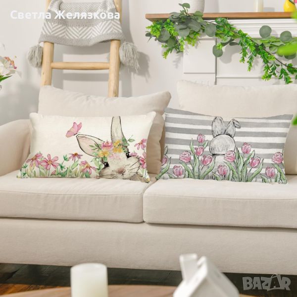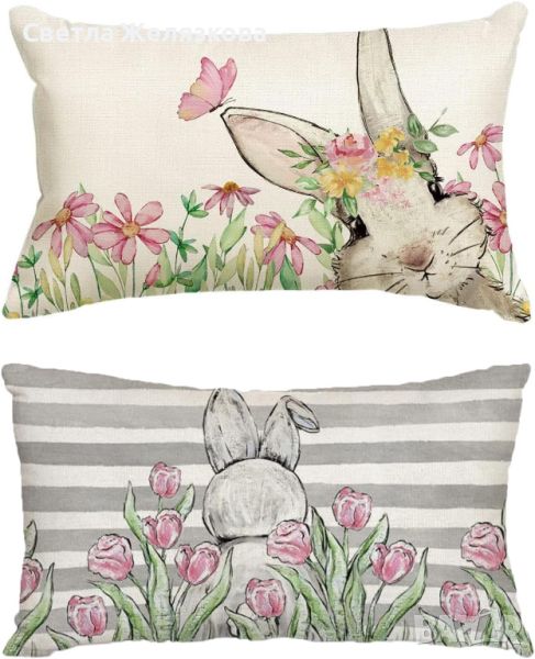 Комплект от 2 великденски калъфки за възглавница, Великденска декоративна калъфка за възглавница, 50 x 30 см, Пролет, Честит Великден, Декоративна калъфка за възглавница, Диван, Декорация за всекидневна.