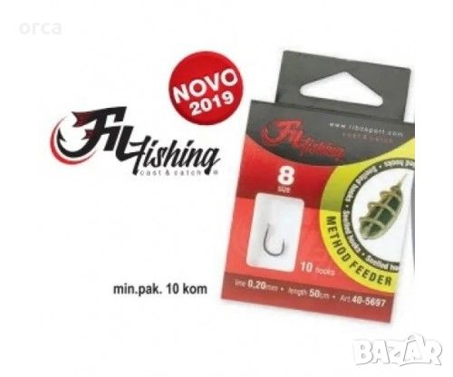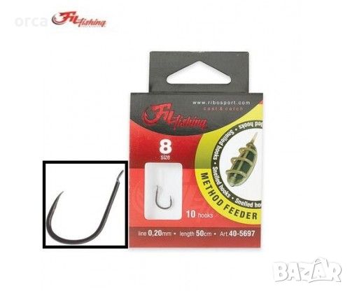 Fil Fishing Method Feeder предлага пакетирани вързани куки, готови за използване при фидер риболов. Всяка кука е проектирана с широка и заоблена извивка, позволяваща монтиране на различни видове стръв. Монофилният повод е прозрачен, здрав и износоустойчив, с дължина 50 см, подходящ за различни видове водоеми и условия на риболов. Куките са химически заточени, с много остър връх и черен никел за по-дълъг живот и надеждност.
