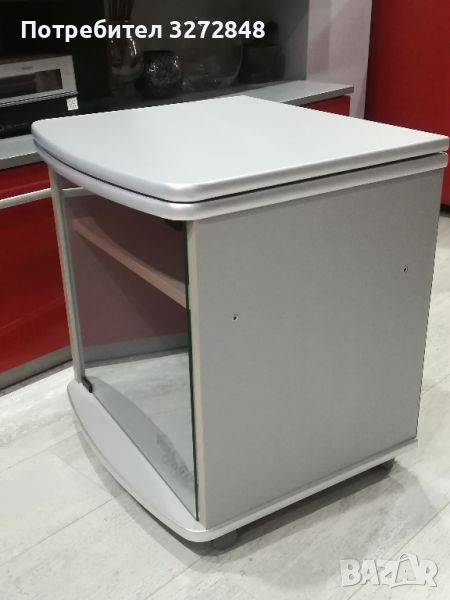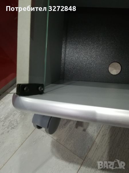 Качествено изработен. Въртящ се на 180° плот. 4броя колелца. 1бр лавица, 2 отвора за кабели. Пращам с куриер. Размери :ширина 51см;височина 56см;дълбочина 46см
