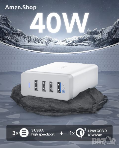SooPii 40W USB зарядно за зареждане 4-портова USB зарядна станция с един порт QC 3.0 за множество