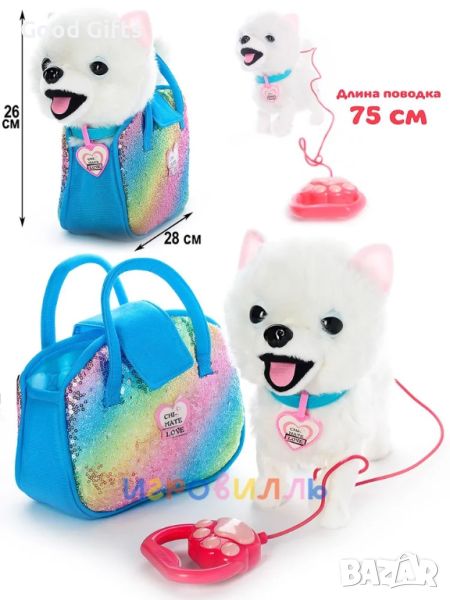 Пухкавият домашен любимец на каишка ще се превърне в най-добрия и верен приятел, с който можете да играете не само у дома, но и да се разхождате заедно! Кученцето може да ходи, да мърда опашка и да пее забавни песни. Невъзможно е да не се влюбите в неговите големи, доверчиви очи.